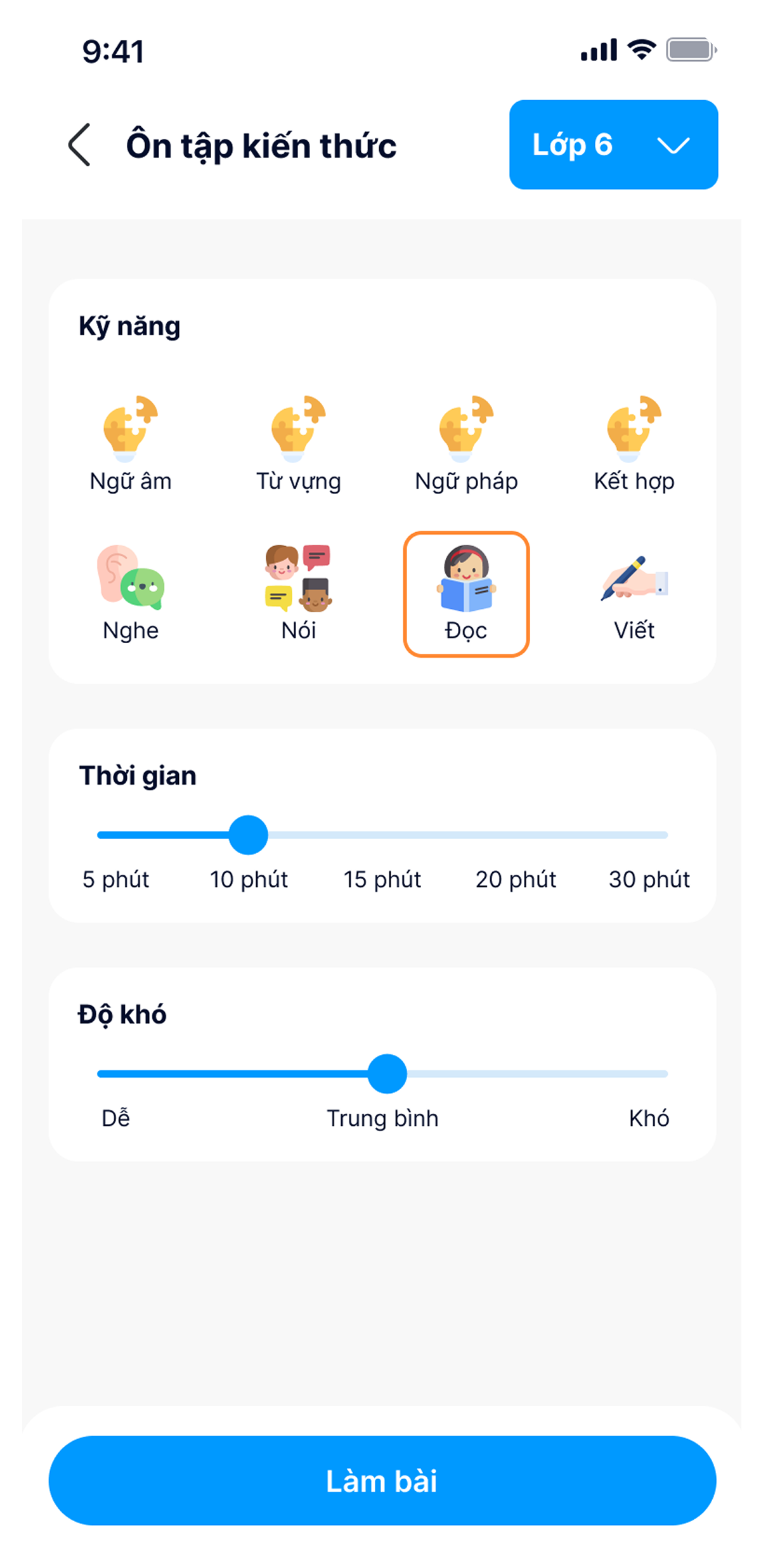 Cung cấp nội dung ôn luyện và kiểm tra theo trình độ, vùng kiến thức cần tập trung, thời gian muốn thực hiện.