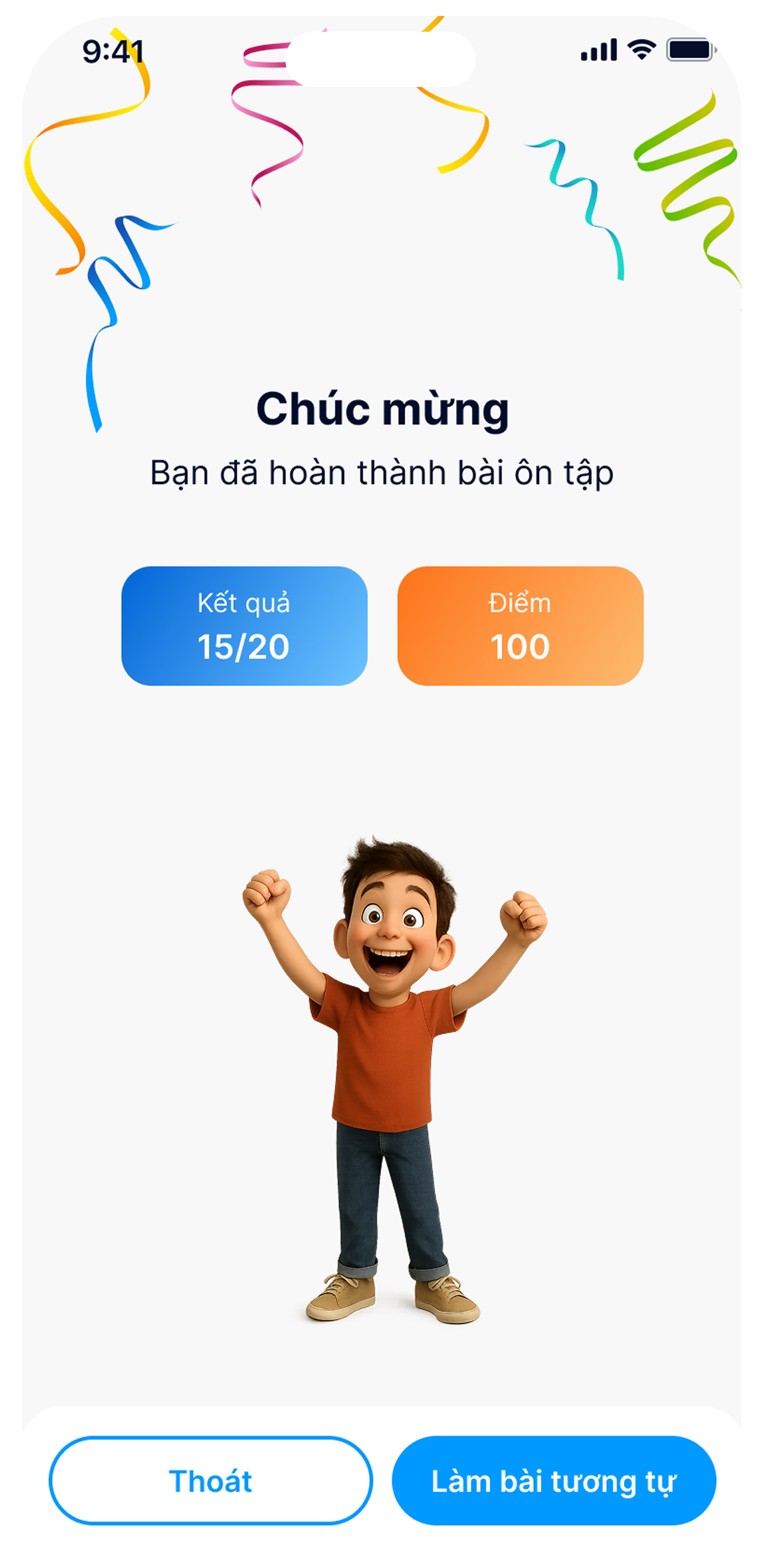 “Em thích nhất là phần luyện nói với AI, nói sai được sửa luôn. Giao diện dễ dùng, nhìn điểm tiến bộ mỗi ngày thấy có động lực học hơn hẳn!”